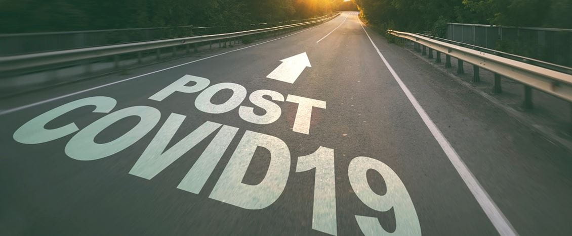 Post-Covid Satz auf einer Strasse geschrieben Post-Covid Satz auf einer Strasse geschrieben